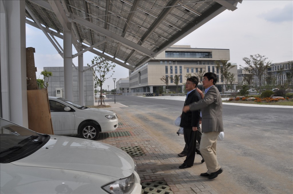 江绵恒参观园区电动车及太阳能充电站