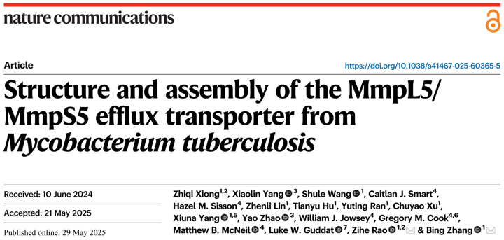 结核病(Tuberculosis, TB)是由结核分枝杆菌(Mycobacterium tuberculosis, Mtb)感染引起的慢性传染病。据世界卫生组织最新报告,结核病已成为全球头号传染病杀手。耐药结核病的高发是当前全球公共卫生领域的重大挑战。贝达喹啉(BDQ)是近40年来首个获得FDA批准的抗结核新药,在临床应用中已出现严重耐药问题,主要归因于外排泵MmpL5/MmpS5的作用。MmpL5/MmpS5还与另一耐多药结核病治疗药物氯法齐明(CFZ)的耐药性密切相关。同时,MmpL5/MmpS5系统与MmpL4/MmpS4系统一起介导结核分枝杆菌的铁载体外排,参与病原体关键营养素铁的摄取,这一过程对于结核分枝杆菌在宿主中的存活与致病性至关重要。然而,MmpL5/MmpS5系统外排药物及铁载体的具体机制仍不明确。