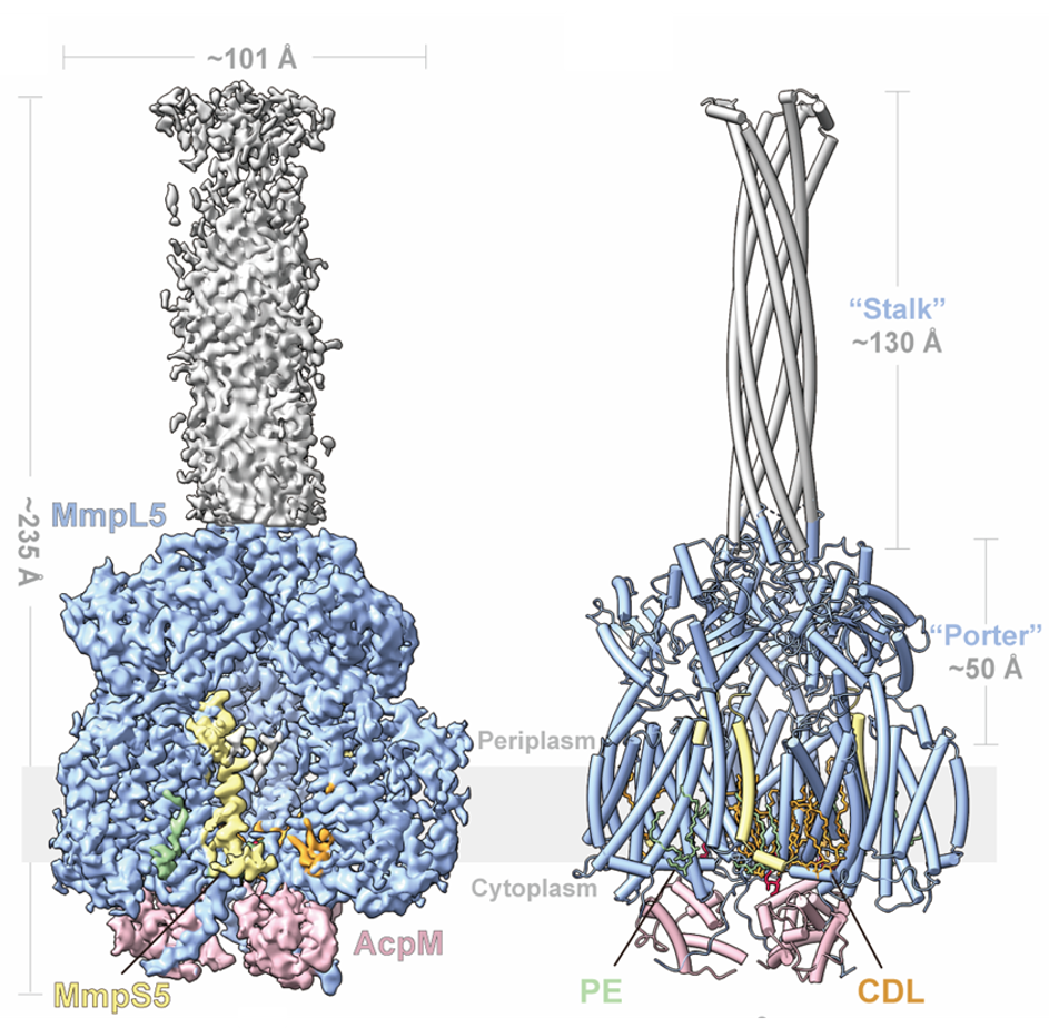 结核分枝杆菌MmpL5-MmpS5-AcpM复合物三维结构