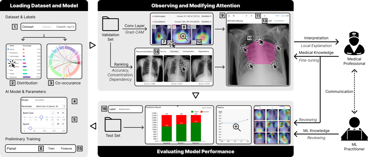 图3|MEDebiaser可视分析系统,旨在引导医生以其熟悉的方式直接修正AI模型的诊断偏见,提升模型准确性与可解释性,便利医生与工程师的合作。