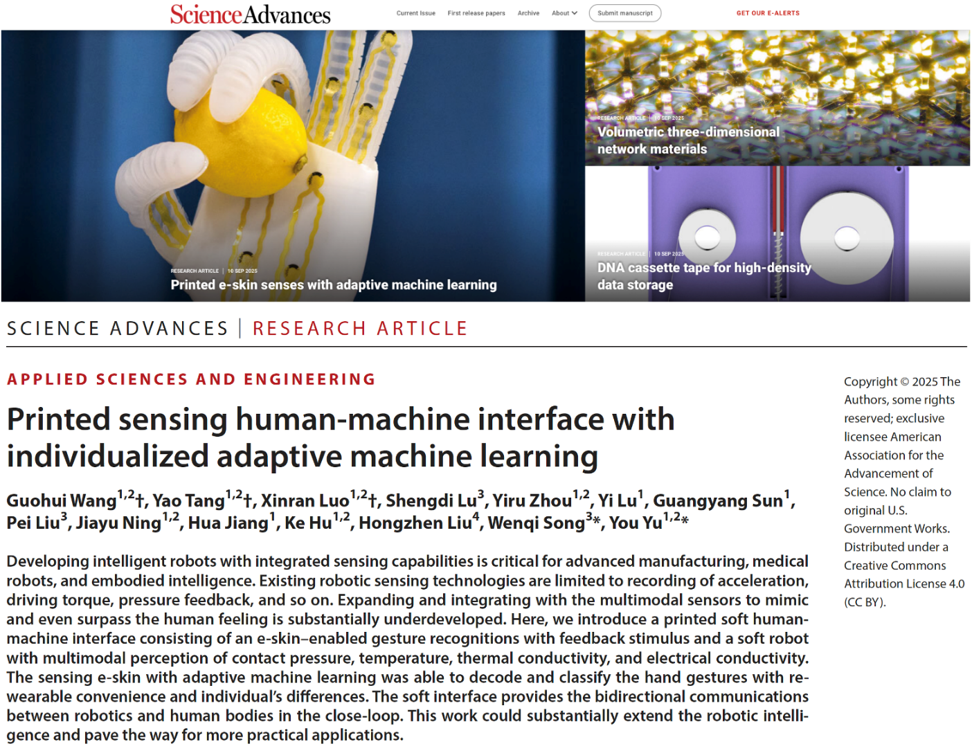 910日,黑人巨大精品欧美_黑人巨大精品欧美黑寡妇_黑人巨大精品欧美一区二区_黑人巨大精品欧美一区二区免费_黑人巨大跨种族video_黑人巨大无码中文字幕无码_黑人巨茎大战俄罗斯美女_黑人巨茎大战俄罗斯美女生物医学工程学院于游课题组和合作者在《科学进展》(Science Advances)上发表标题为“Printed sensing human-machine interface with individualized adaptive machine learning”的研究论文,报道了一种3D打印技术制备的多模态传感柔性生物电子,结合个体间自适应的机器学习算法,打通了从控制、手势识别到机器人触觉感知反馈的交互路径,并且进一步在智能假肢方面展现出巨大的应用潜力。